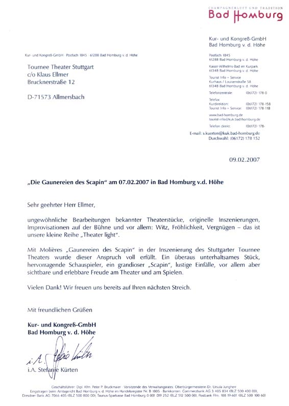 | Kultur- und Kongress GmbH, 09.02.2007 |